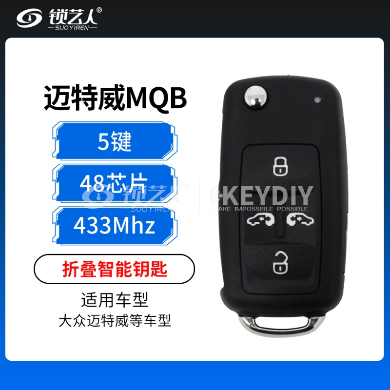 大众迈特威MQB折叠智能钥匙-5键-MQB-433MHZ-48芯片